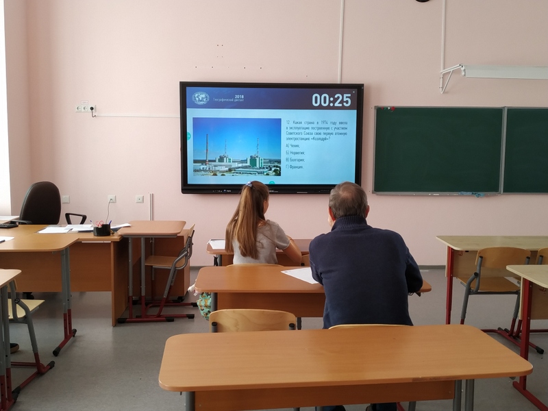 Гости разделились на 2 аудитории: в одной сидели только учащиеся средних классов, в другой оказались не только школьники, но и жители Бирюлева Западного старшего возраста. Сначала организаторы провели небольшой познавательный опрос посетителей. У них спросили, в каком году было основано Русское географическое общество и кому принадлежала идея создания, задали несколько вопросов на географическую смекалку и догадливость. Конечно, взрослые вырвались вперед по количеству правильных ответов, но и дети с удовольствием вспоминали материалы из учебников, карты в атласах и известные в географии имена выдающихся ученых. Сам диктант прошел в интерактивной форме: вопросы выводились на школьную смарт-доску, после чего запускался таймер. Примечательно, что вопросы в этом году озвучили известные медийные личности, такие как журналистка Анастасия Чернобровина, телеведущий Дмитрий Дибров и другие. Результаты диктанта участники могут узнать по индивидуальному номеру, присвоенному каждому из выданных бланков.