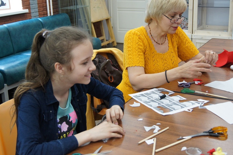 В занятии участвовали не только юные жители района, но и представители старшего поколения. В начале мастер-класса ведущая раздала всем трафареты, по которым создавались лисьи мордочки. Затем участники вырезали белые «щечки» и начали работать с бисером, чтобы сделать глаза и нос.