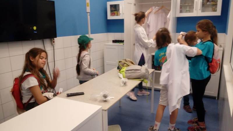 А в понедельник, 8 июля, лагерь отправился в детский город профессий «Kids City». Там дети освоили профессии медработников, ветеринаров, флористов, полицейских, радистов, футболистов и художников.