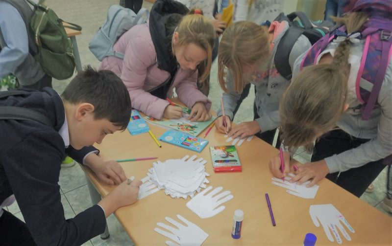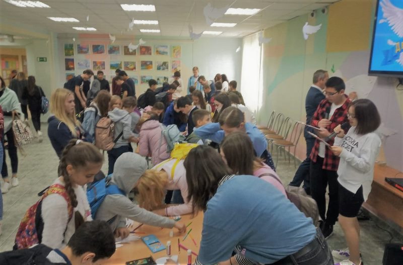 Для начальных классов в образовательном учреждении провели занятия «День Мира в детских рисунках». Ученики средней школы на переменах между уроками присоединились к акции «Голубь мира», который организовал Совет Единомышленников. Ведущие рассказали об истории праздника, а также предложили ребятам написать свои добрые пожелания на «бумажных ладошках» и приклеить их на крылья голубей (в качестве перьев), расположенных на стене первого этажа учреждения.