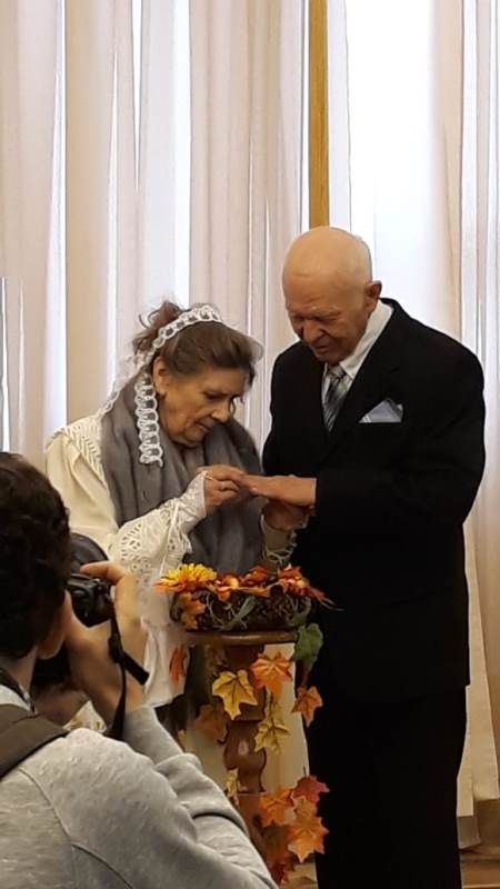 Когда началась церемония, все чувствовали необыкновенность момента – редко люди решают соединить свои жизни в таком возрасте. Все в зале плакали. Даже сотрудница ЗАГС, которая вела церемонию, растрогалась и произнесла свою речь с нежностью, со слезами на глазах.