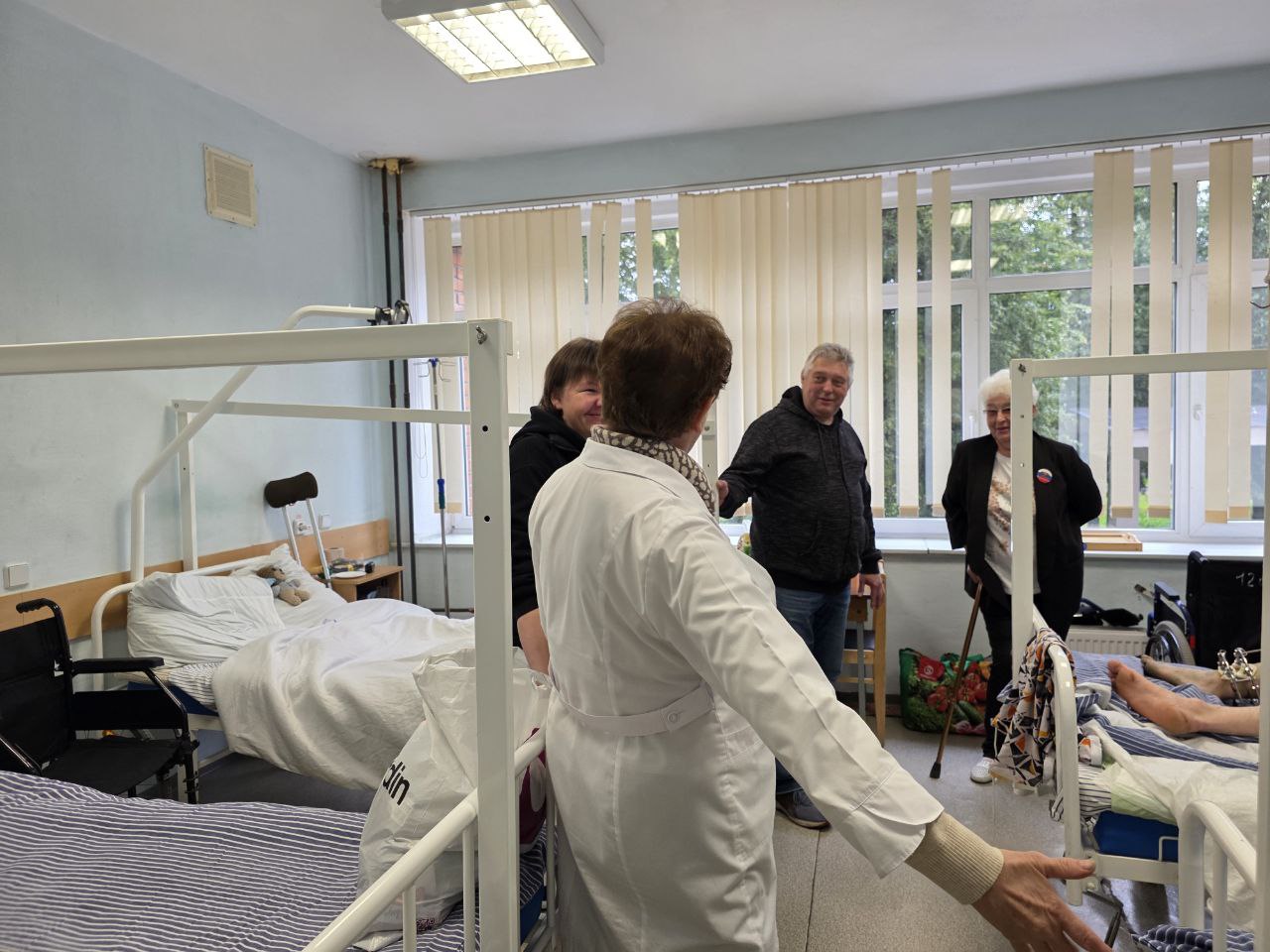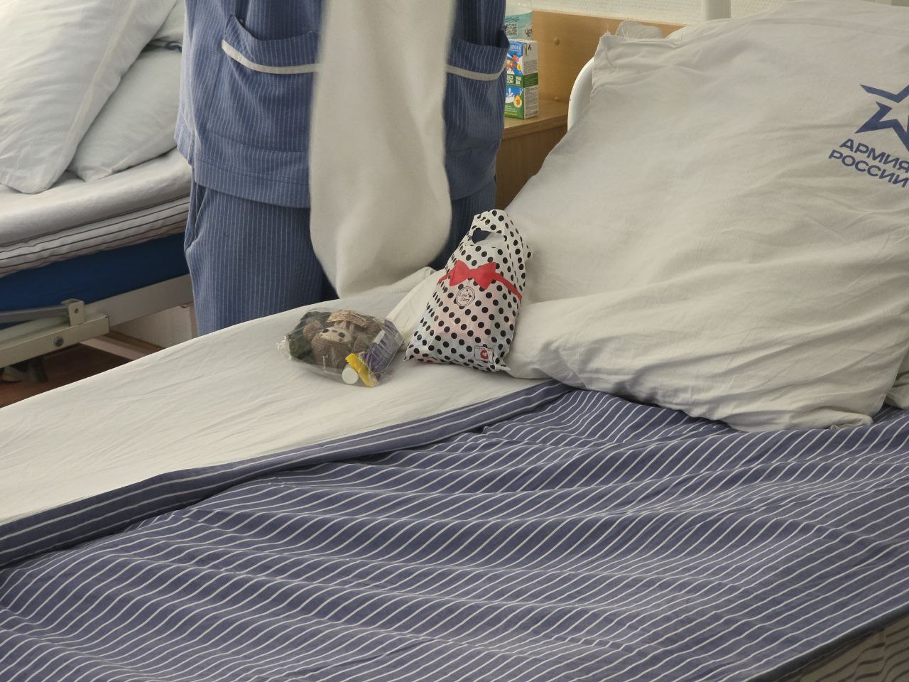 Александр Орехов традиционно прошелся по палатам и пообщался с солдатами. Он пожелал военнослужащим скорейшего выздоровления и возвращения домой, а также передал им сладкие наборы к чаю и вязанные игрушки-чебурашки.